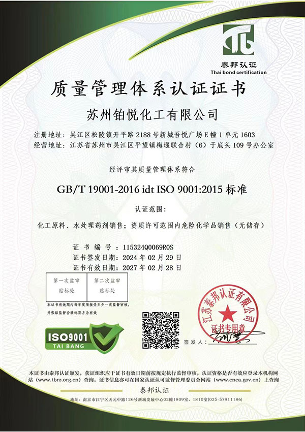 蘇州鉑悅化工有限公司是:葡萄糖、葡萄糖酸鈉、EDTA-2Na、EDTA-4Na、檸檬酸、草酸、氨基磺酸、亞氯酸鈉、保險粉、醋酸鈉、十二烷基硫酸鈉、水處理藥劑等產品專業(yè)生產加工的公司,擁有完整、科學的質量 管理體系。本公司是一家化學品超市性質的精細化學品原料生產企業(yè)。我公司專業(yè)從事有機 溶劑、無機酸堿、印染助劑、化學品輔料、水處理藥劑等精細化學品原料的批發(fā)與銷售, 目前經營的精細化學品種類有近100種,產品種類還在不斷擴展。 公司自成 立以來立足蘇州、輻射周邊,目前是江蘇地區精細化學品原料主要生產之一。 我公司面向全國批量采購,擁有自己的倉儲物流體系,價格優(yōu)勢明顯,同 時我公司注重產品質量,服務周到,得到了客戶的廣泛認可。 我公司秉 承“誠信為本,質量保證,客戶至上,合作共贏”的理念,堅持為客戶提 供價格合理、質量過硬的產品,并為客戶提供周到的服務,力爭成為江蘇精細化學品原料市場優(yōu)先品牌。 我們將以優(yōu)質的產品,誠信的服務來提高企業(yè) 競爭力,真誠歡迎多方合作伙伴共同發(fā)展、共創(chuàng)輝煌!